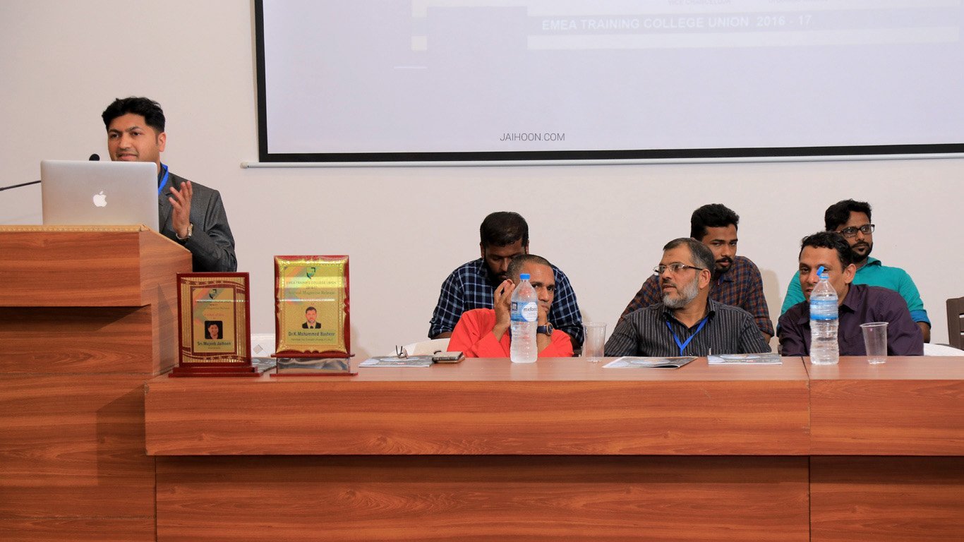 Summary of Mujeeb Jaihoon’s thematic presentation at EMEA Training College (Kondotty- Kerala). Co-guests at the event included Dr.k Mohammed Basheer, Vice Chancellor of Calicut University, Swami Athmadas Yami Dharmapaksha, counselor and trainer, Aseel Abdul Wahid, principal of the college (july 05 2018).